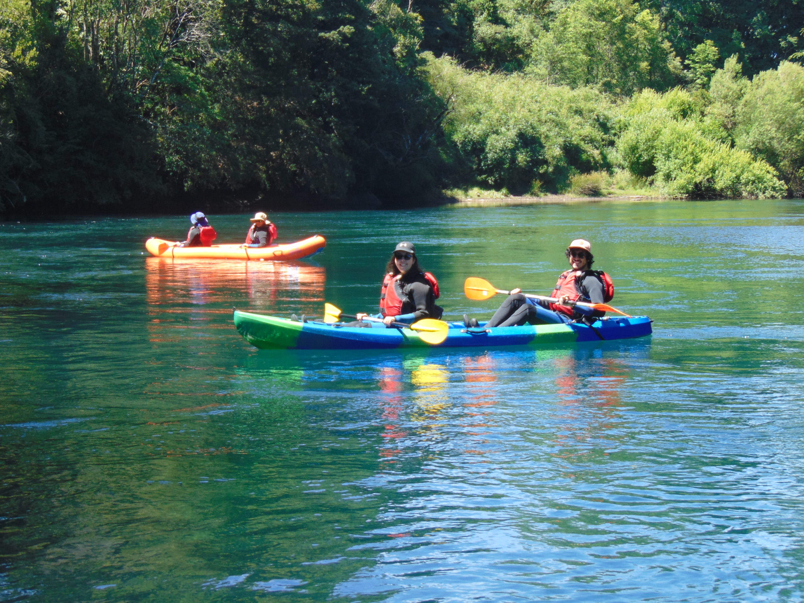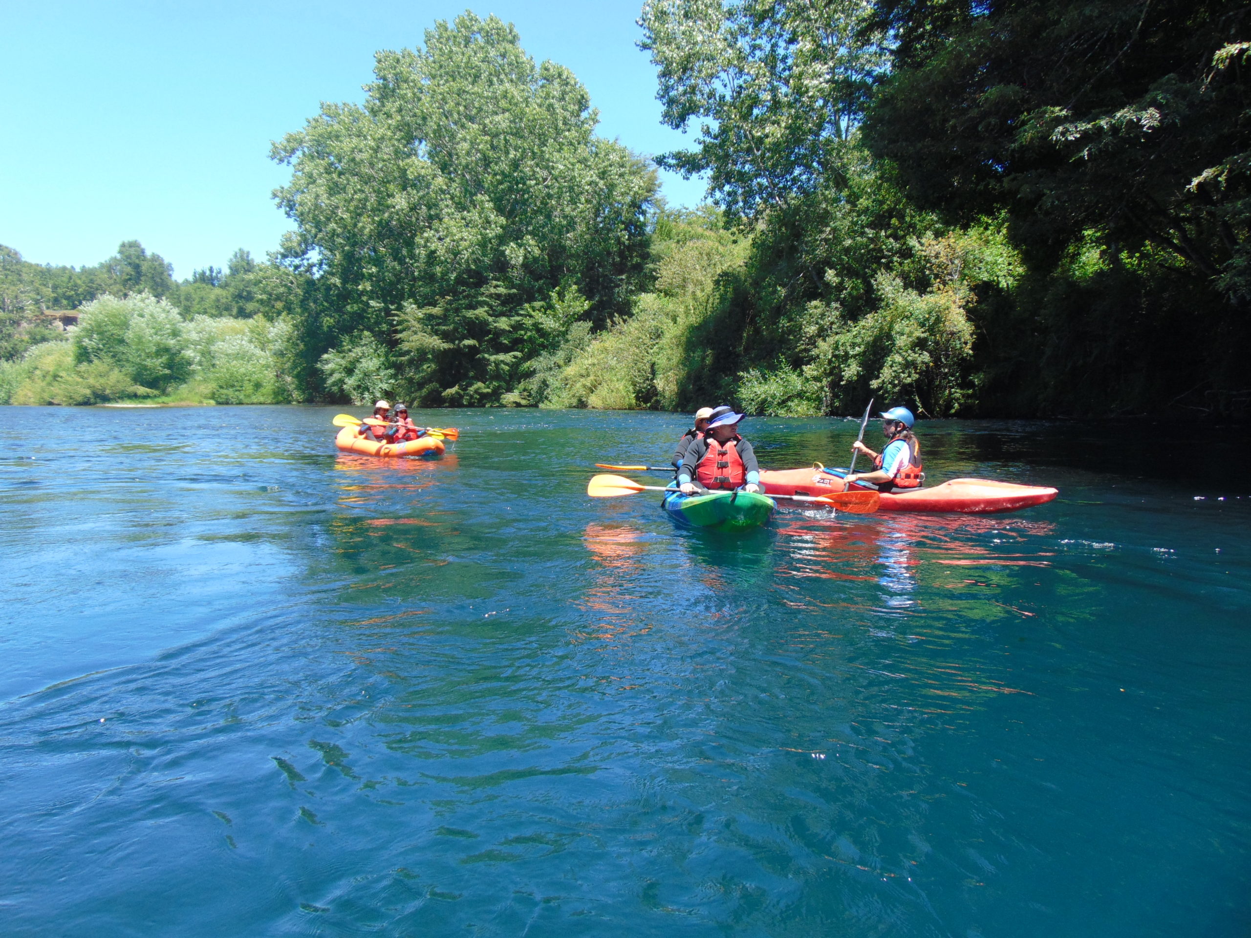 U kunt genieten van een prachtige rit van 4 uur, 6 km afdalend door inheemse bossen, turquoise wateren en ansichtkaarten met de Villarrica-vulkaan op de achtergrond. U kunt baden en zwemmen in de buurt van de boten als u dat wilt, zonder kou en zonder gevaar, uitgerust met een neopreen pak en een reddingsvest.